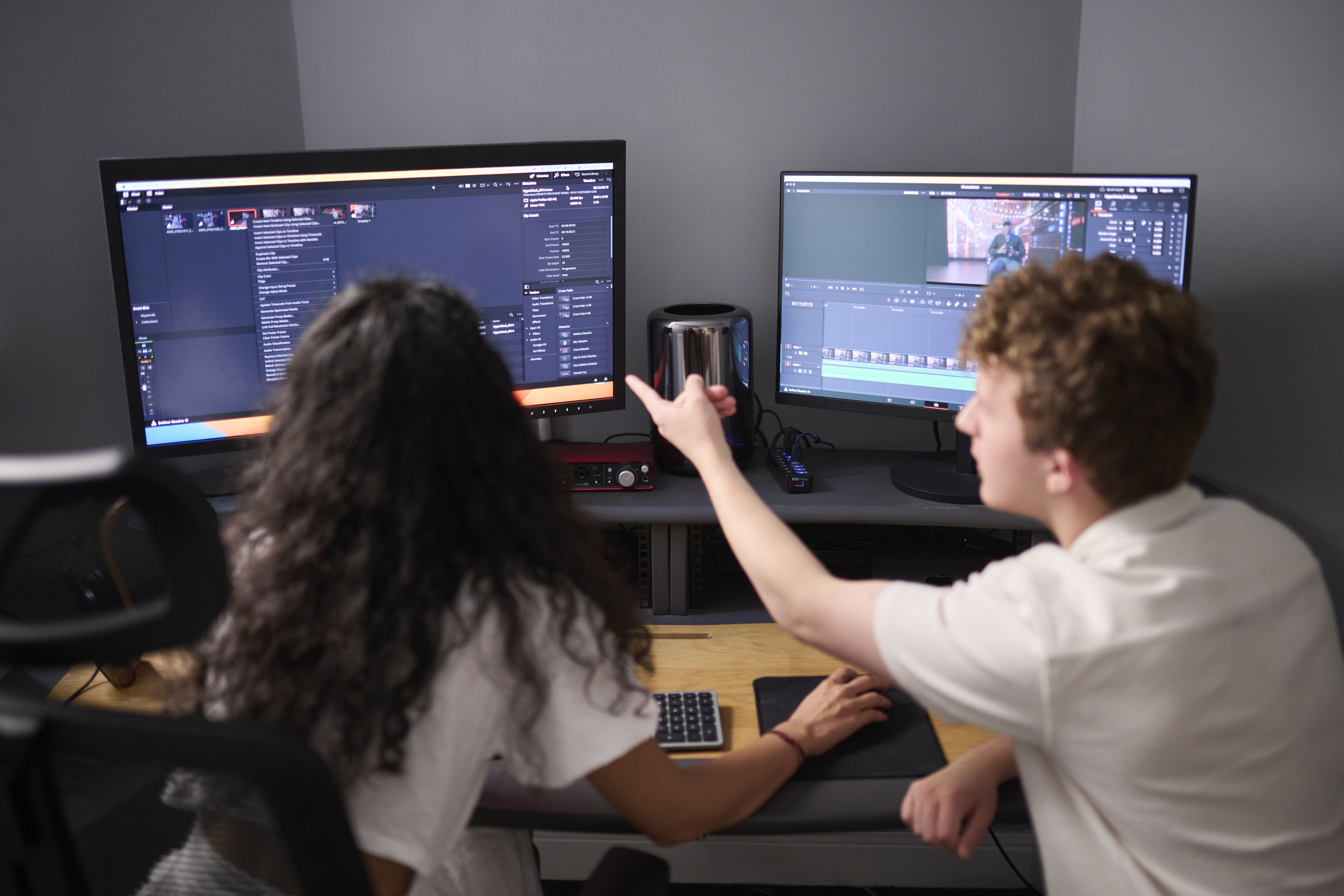Our Post-Production Zone was fully upgraded in 2023 to reflect the latest industry standards and workflows. It provides everything you need to take your projects from start to screen all in one place. With dedicated edit bays, a professional colour grading suite, animation facilities and a sound recording studio, you’ll have access to the same tools and technology used in professional post houses. Whether you’re editing short films, experimenting with VFX, building animation, or mixing immersive sound, the Post-Production Zone is designed to support your learning and help you develop the skills to work confidently in real-world production environments.